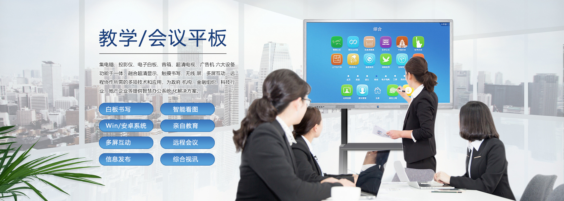 在信息急劇膨脹、互聯網快速發展、競爭愈加激烈的商業社會,“開會”已經成了職場人士最為熟悉的一種工作方式。尤其是企業,工作中需要通過許多大大小小的會議交流信息、解決問題和作出決策。會議的最終目的是提高企業運作的效率,但是許多的企業卻往往陷入了“低效率”的泥潭。場景一:在與客戶的洽談會上!準備好的PPT竟發現打不開了!場景二:開會啦!與會人員陸續進入會議室,人手一疊厚厚的資料,一時間,整潔干凈的會議室一下子沸騰起來,會議討論聲,不停翻找資料的刷刷聲好不“熱鬧”!場景三:炎炎夏日,在小“黑”層里,投影機發出陣陣熱浪,讓周圍本就燥熱的人更加的心浮氣躁,久久不能平靜下來,更何從談起會議質量!場景四:遠程......